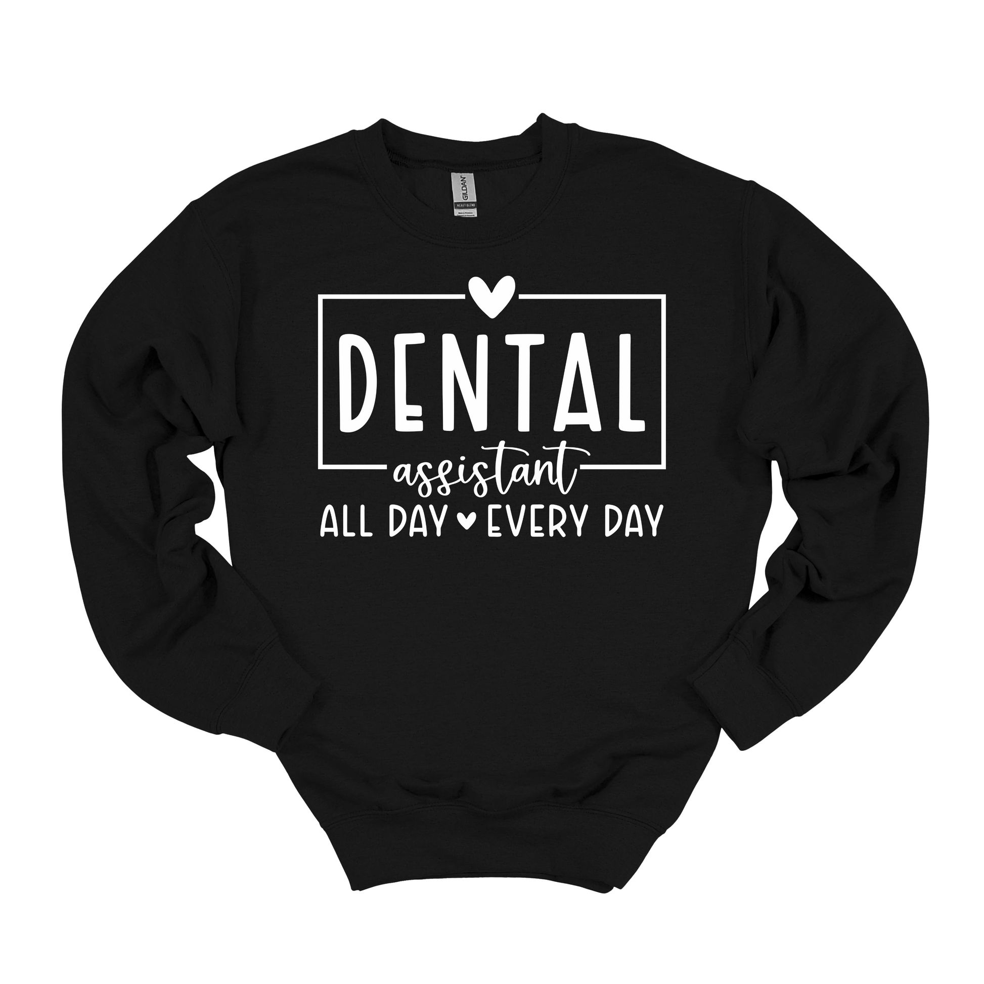 Stay cozy while living the dental assistant life with our 'Dental Assistant All Day Every Day' sweatshirt or shirt. Perfect for long days and nights at the office, this piece is a must-have for any dental assistant. Look cute and comfortable in our fun design!