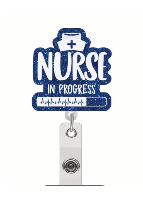 Show off your nursing progress with this blue badge reel that boasts a playful "Nurse in Progress" design. The perfect accessory for any medical professional, this badge reel keeps your ID handy while adding a touch of fun to your uniform. Keep progressing, nurse!